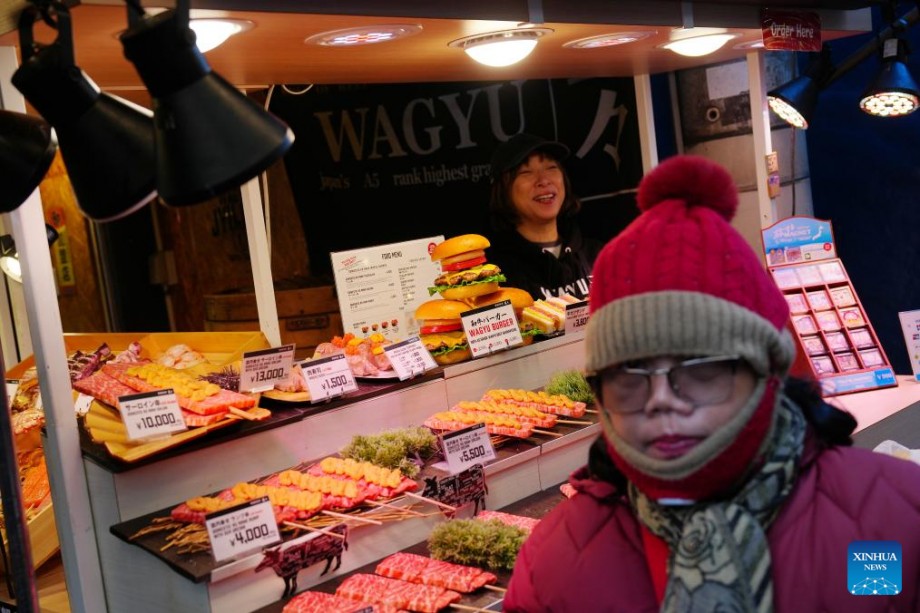 A food vendor attracts customers in Tokyo, Japan, Dec. 18, 2025.