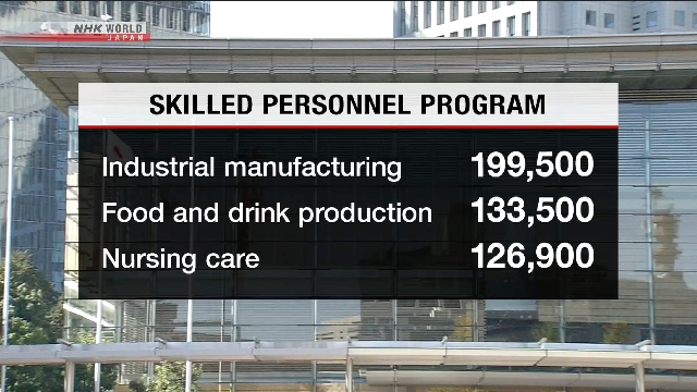It says 805,700 people will be accepted in 19 fields under the current system for specified skilled workers. By industry, 199,500 would be in the manufacturing of industrial products, 133,500 would be in the manufacturing of food and drink products and 126,900 would be in nursing care.