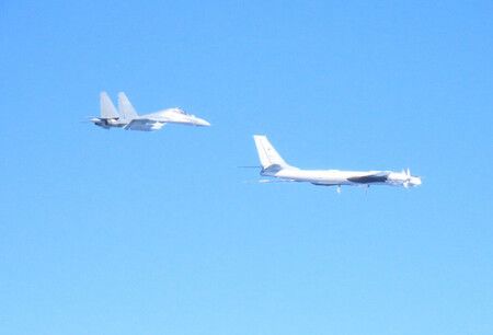 The planes reversed their course over the Pacific Ocean off Shikoku to return to the East China Sea. During the flight, they were joined by Chinese J-16 fighters. The office also said Russia's Su-30 fighters and A-50 early warning plane were spotted over the Sea of Japan.