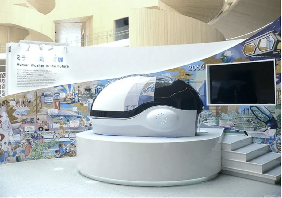 Designed by Osaka-based bathroom fixture company Science, this pod is called the Mirai Ningen Sentakki, which translates to “Future Human Washing Machine,” but which the company also gives the official English designation Human Washer in the Future.