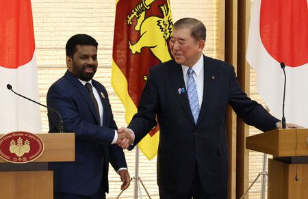 Japanese Prime Minister Shigeru Ishiba and Sri Lankan President Anura Kumara Dissanayake met in Tokyo on Monday and agreed that Japan will provide about 10 surveillance drones, worth about 500 million yen, to the South Asian nation's navy.