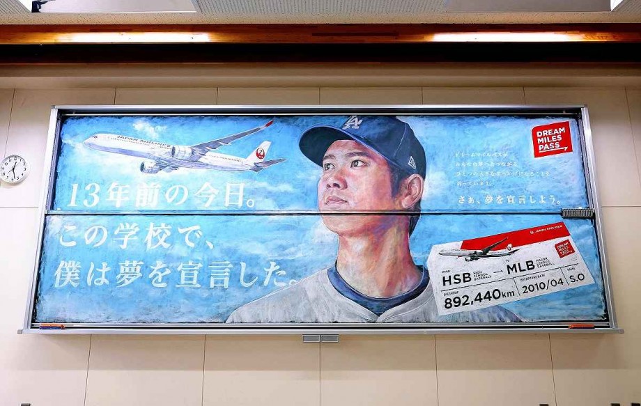 The project was planned by Japan Airlines Co., which has a support contract with Ohtani, and created by chalk artist Mayumi Kawano.
